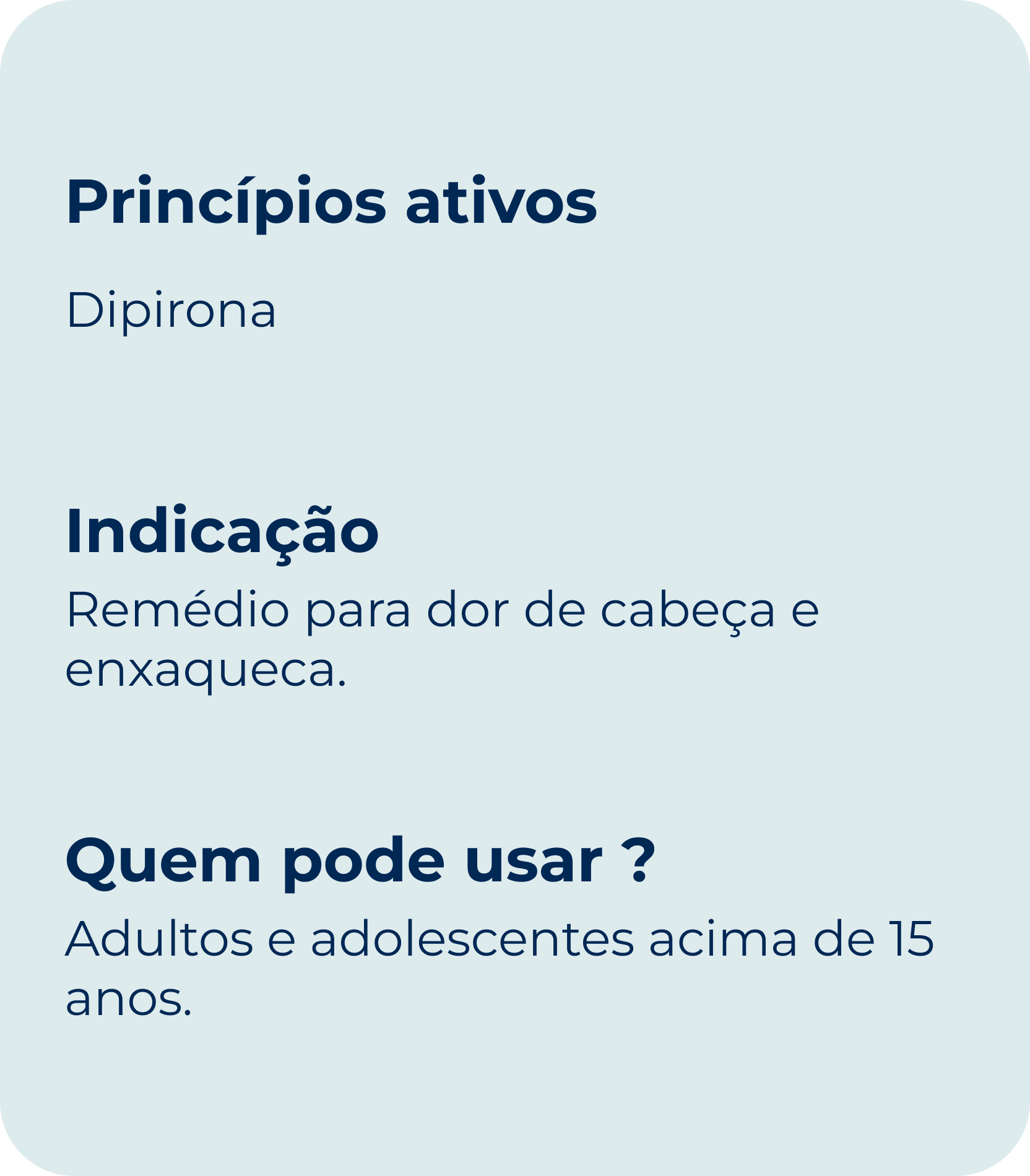 DORFLEX® DIP (dipirona monoidratada). Indicações: analgésico e antitérmico. MS 1.8620.0007. O USO DO MEDICAMENTO PODE TRAZER ALGUNS RISCOS. Leia atentamente a bula. SE PERSISTIREM OS SINTOMAS, O MÉDICO DEVERÁ SER CONSULTADO.